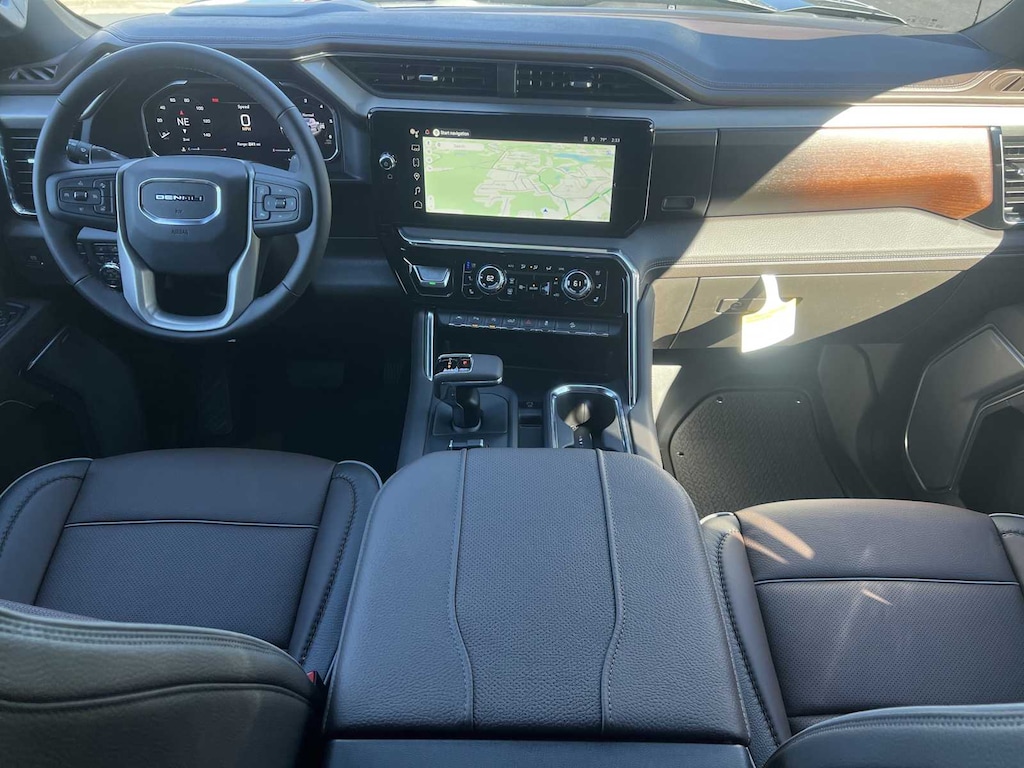 DENALI RESERVE PACKAGE includes (CWM) Technology Package, (CF5) sunroof, (BRS) GMC MultiPro Power Steps and (SH0) 22" Painted Aluminum Wheel with Machining and Bright Chrome Inserts, TECHNOLOGY PACKAGE includes (DRZ) Rear Camera Mirror and (UV6) Multicolor 15" Diagonal Head-Up Display, AUDIO SYSTEM, 13.4" DIAGONAL PREMIUM GMC INFOTAINMENT SYSTEM WITH GOOGLE BUILT IN APPS SUCH AS NAVIGATION AND VOICE ASSISTANCE, INCLUDES COLOR TOUCH-SCREEN, MULTI-TOUCH DISPLAY, AM/FM STEREO Bluetooth® streaming audio for music and most phones; featuring wireless Android Auto® and Apple CarPlay® capability for compatible phones (STD), ENGINE, 5.3L ECOTEC3 V8 (355 hp [265 kW] @ 5600 rpm, 383 lb-ft of torque [518 Nm] @ 4100 rpm); featuring Dynamic Fuel Management (STD), TRANSMISSION, 10-SPEED AUTOMATIC WITH ELECTRONIC PRECISION SHIFT, ELECTRONICALLY CONTROLLED with overdrive, and tow/haul mode and steering column paddle shifters. Includes Cruise Grade Braking and Powertrain Grade Braking (STD). GMC Denali with Sterling Metallic exterior and Atmosphere/Brownstone interior features a 8 Cylinder Engine with 355 HP at 5600 RPM*.