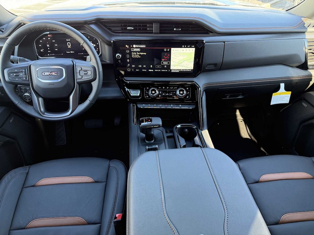 TECHNOLOGY PACKAGE includes (DRZ) Rear Camera Mirror and (UV6) Multicolor 15" Diagonal Head-Up Display (Includes (UVN) Bed View Camera.), SUNROOF, POWER, AT4 PREFERRED PACKAGE includes (UG1) Universal Home Remote and (A48) rear sliding power window, AUDIO SYSTEM, 13.4" DIAGONAL PREMIUM GMC INFOTAINMENT SYSTEM WITH GOOGLE BUILT IN APPS SUCH AS NAVIGATION AND VOICE ASSISTANCE, INCLUDES COLOR TOUCH-SCREEN, MULTI-TOUCH DISPLAY, AM/FM STEREO Bluetooth® streaming audio for music and most phones; featuring wireless Android Auto® and Apple CarPlay® capability for compatible phones (STD), ENGINE, DURAMAX 3.0L TURBO-DIESEL I6 (305 hp [227 kW] @ 3750 rpm, 495 lb-ft of torque [671 Nm] @ 2750 rpm) (Includes (KW5) 220-amp alternator and (K05) engine block heater.) (STD), TRANSMISSION, 10-SPEED AUTOMATIC WITH ELECTRONIC PRECISION SHIFT, ELECTRONICALLY CONTROLLED with overdrive, tow/haul mode and steering column paddle shifters. Includes Cruise Grade Braking and Powertrain Grade Braking (STD). GMC AT4 with Sterling Metallic exterior and Jet Black with Kalahari accents interior features a Straight 6 Cylinder Engine with 305 HP at 3750 RPM*.