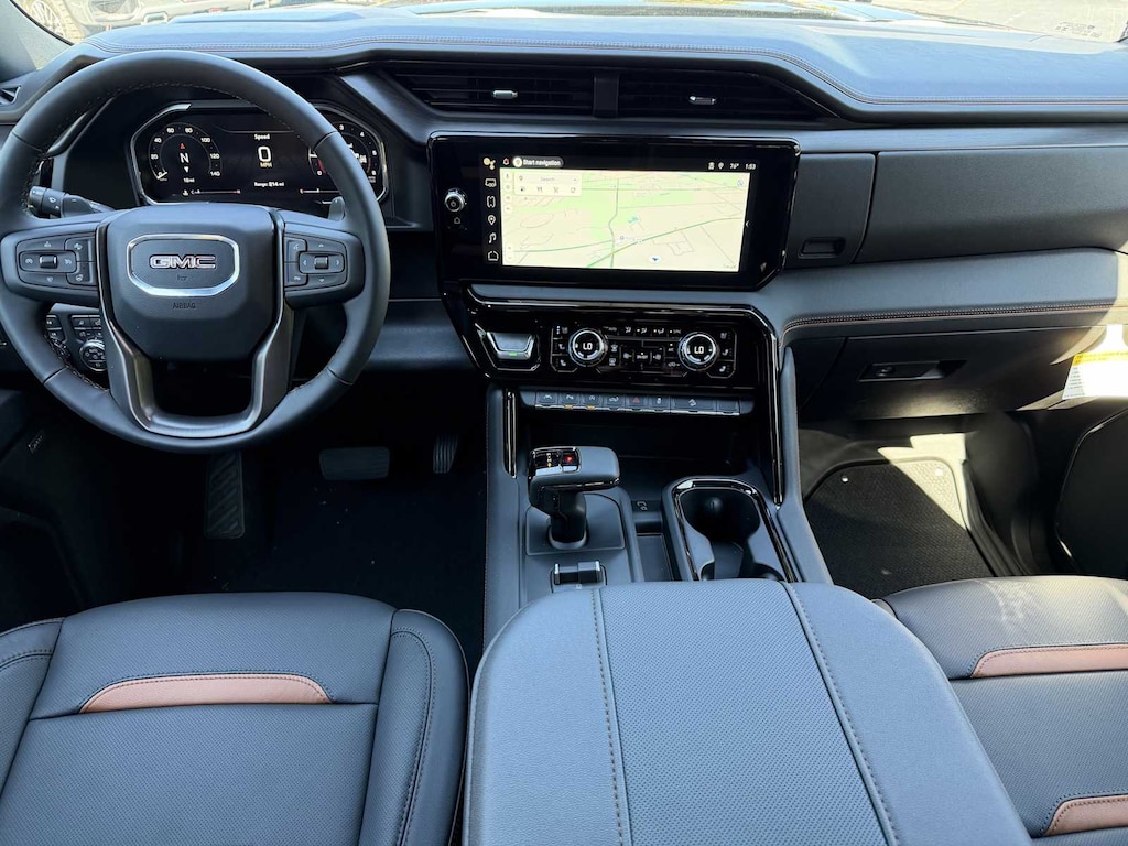 TECHNOLOGY PACKAGE includes (DRZ) Rear Camera Mirror and (UV6) Multicolor 15" Diagonal Head-Up Display (Includes (UVN) Bed View Camera.), ENGINE, 6.2L ECOTEC3 V8 (420 hp [313 kW] @ 5600 rpm, 460 lb-ft of torque [624 Nm] @ 4100 rpm); featuring Dynamic Fuel Management, SUNROOF, POWER, AT4 PREFERRED PACKAGE includes (UG1) Universal Home Remote and (A48) rear sliding power window, AUDIO SYSTEM, 13.4" DIAGONAL PREMIUM GMC INFOTAINMENT SYSTEM WITH GOOGLE BUILT IN APPS SUCH AS NAVIGATION AND VOICE ASSISTANCE, INCLUDES COLOR TOUCH-SCREEN, MULTI-TOUCH DISPLAY, AM/FM STEREO Bluetooth® streaming audio for music and most phones; featuring wireless Android Auto® and Apple CarPlay® capability for compatible phones (STD), TRANSMISSION, 10-SPEED AUTOMATIC WITH ELECTRONIC PRECISION SHIFT, ELECTRONICALLY CONTROLLED with overdrive, and tow/haul mode and steering column paddle shifters. Includes Cruise Grade Braking and Powertrain Grade Braking. GMC AT4 with Sterling Metallic exterior and Jet Black with Kalahari accents interior features a 8 Cylinder Engine with 420 HP at 5600 RPM*.