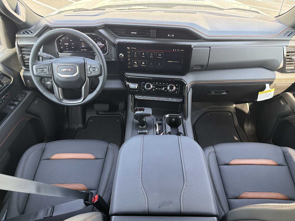 TECHNOLOGY PACKAGE includes (DRZ) Rear Camera Mirror and (UV6) Multicolor 15" Diagonal Head-Up Display (Includes (UVN) Bed View Camera.), SUNROOF, POWER, AT4 PREFERRED PACKAGE includes (UG1) Universal Home Remote and (A48) rear sliding power window, AUDIO SYSTEM, 13.4" DIAGONAL PREMIUM GMC INFOTAINMENT SYSTEM WITH GOOGLE BUILT IN APPS SUCH AS NAVIGATION AND VOICE ASSISTANCE, INCLUDES COLOR TOUCH-SCREEN, MULTI-TOUCH DISPLAY, AM/FM STEREO Bluetooth® streaming audio for music and most phones; featuring wireless Android Auto® and Apple CarPlay® capability for compatible phones (STD), ENGINE, DURAMAX 3.0L TURBO-DIESEL I6 (305 hp [227 kW] @ 3750 rpm, 495 lb-ft of torque [671 Nm] @ 2750 rpm) (Includes (KW5) 220-amp alternator and (K05) engine block heater.) (STD), TRANSMISSION, 10-SPEED AUTOMATIC WITH ELECTRONIC PRECISION SHIFT, ELECTRONICALLY CONTROLLED with overdrive, tow/haul mode and steering column paddle shifters. Includes Cruise Grade Braking and Powertrain Grade Braking (STD). GMC AT4 with Sterling Metallic exterior and Jet Black with Kalahari accents interior features a Straight 6 Cylinder Engine with 305 HP at 3750 RPM*.