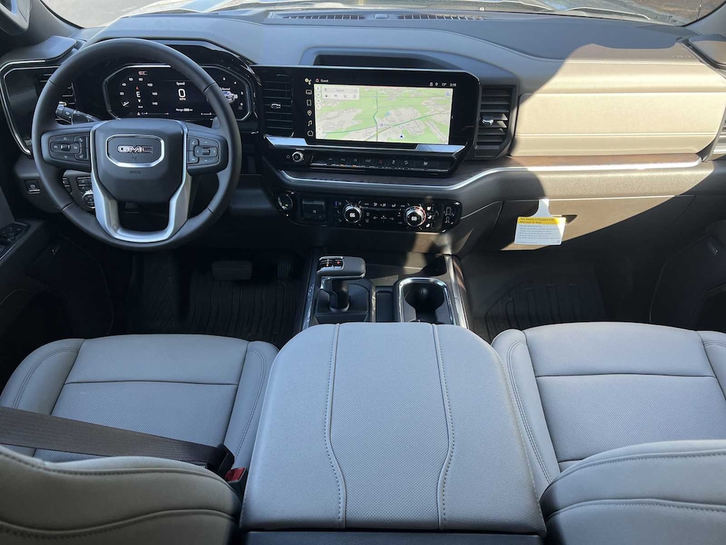 SLT PREMIUM PLUS PACKAGE includes (PCY) SLT Convenience Package, (PDY) SLT Preferred Package, (PED) Sierra Safety Plus Package, (ZL6) ProGrade Trailering system, (NZD) 20" Polished aluminum wheels, (BVT) Chrome assist steps and (CGN) spray-on bedliner. SLT CONVENIENCE PACKAGE includes (A50) bucket seats with (D07) center console, (KQV) ventilated front seats, (K4C) Wireless Charging, (UQA) Bose Premium Audio System, (N38) Power Rake/ Telescoping steering column and (UBC) USB ports, 2 (first row) Charge and Data ports located inside armrest, X31 OFF-ROAD AND PROTECTION PACKAGE includes (X31) Off-Road Package, (CGN) spray-on bedliner and (RIA) All-weather floor liners, LPO Includes (NZD) 20" Polished aluminum wheels and (QAE) 275/60R20 all-terrain, blackwall tires. SLT PREFERRED PACKAGE Includes (KSG) Adaptive Cruise Control, (A48) rear sliding power window, (UG1) Universal Home Remote and (KA6) heated second row outboard seats, SUNROOF, POWER, SIERRA SAFETY PLUS PACKAGE includes (UD5) Front and Rear Park Assist, (UFB) Rear Cross Traffic Braking, (UKK) Rear Pedestrian Alert, (TRG) Trailer Camera Provisions, (UKV) Trailer Side Blind Zone Alert and (UV2) HD Surround Vision (Includes (HS1) Safety Alert Seat. AUDIO SYSTEM, 13.4" DIAGONAL PREMIUM GMC INFOTAINMENT SYSTEM WITH GOOGLE BUILT IN APPS SUCH AS NAVIGATION AND VOICE ASSISTANCE, INCLUDES COLOR TOUCH-SCREEN, MULTI-TOUCH DISPLAY, AM/FM STEREO Bluetooth® streaming audio for music and most phones; featuring wireless Android Auto® and Apple CarPlay® capability for compatible phones (STD), ENGINE, 5.3L ECOTEC3 V8 (355 hp [265 kW] @ 5600 rpm, 383 lb-ft of torque [518 Nm] @ 4100 rpm); featuring Dynamic Fuel Management (STD), TRANSMISSION, 10-SPEED AUTOMATIC WITH ELECTRONIC PRECISION SHIFT, ELECTRONICALLY CONTROLLED with overdrive, and tow/haul mode and steering column paddle shifters. Includes Cruise Grade Braking and Powertrain Grade Braking. GMC SLT with Sterling Metallic exterior and Dark Walnut/Slate interior features a 8 Cylinder Engine with 355 HP at 5600 RPM*.