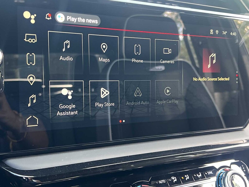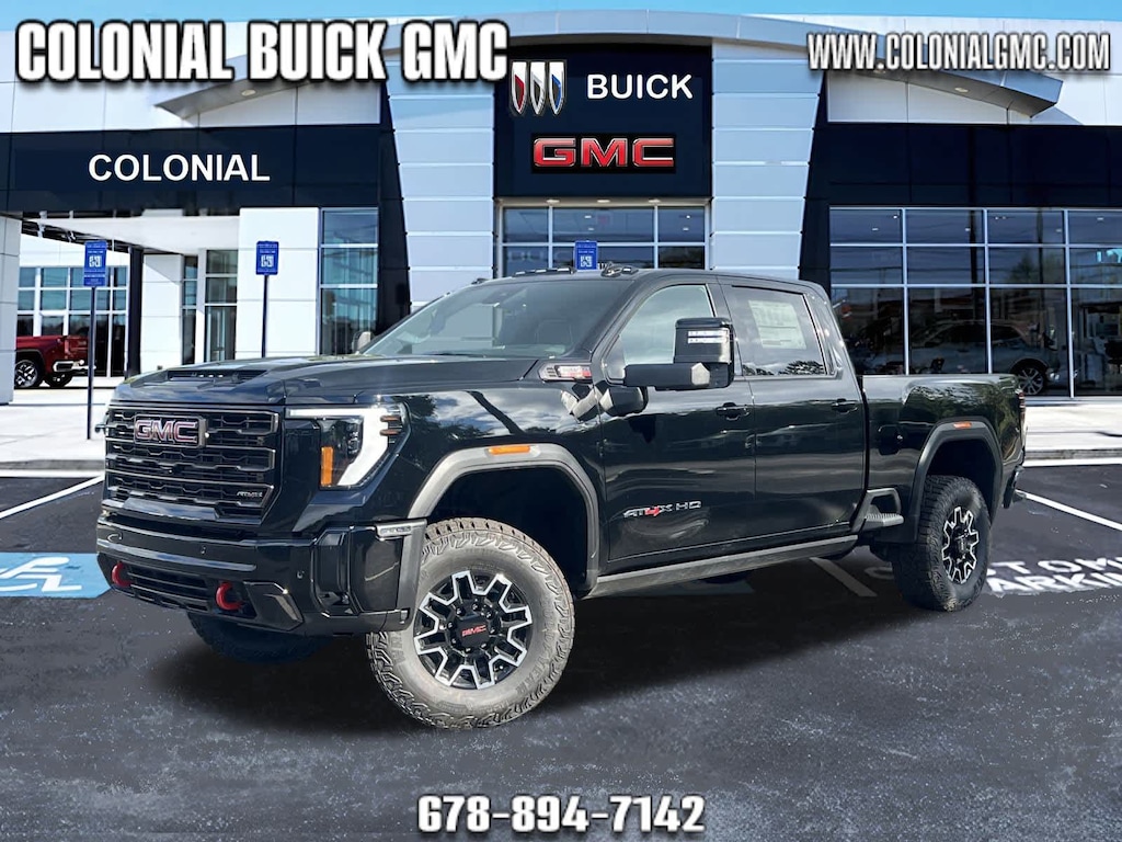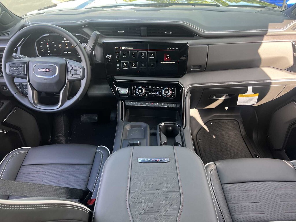 ENGINE, DURAMAX 6.6L TURBO-DIESEL V8, B20-DIESEL COMPATIBLE (470 hp [350.5 kW] @ 2800 rpm, 975 lb-ft of torque [1322 Nm] @ 1600 rpm) (Includes (K05) engine block heater.), AUDIO SYSTEM, 13.4" DIAGONAL PREMIUM GMC INFOTAINMENT SYSTEM WITH GOOGLE BUILT IN APPS SUCH AS NAVIGATION AND VOICE ASSISTANCE includes color touch-screen, multi-touch display, AM/FM stereo, Bluetooth® streaming audio for music and most phones; featuring wireless Android Auto® and Apple CarPlay® capability for compatible phones (STD), TRANSMISSION, 10-SPEED AUTOMATIC. GMC AT4X with Onyx Black exterior and Obsidian Rush interior features a 8 Cylinder Engine with 470 HP at 2800 RPM*.