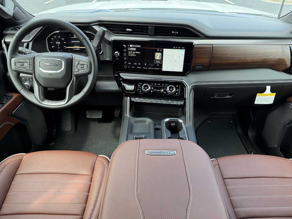 AUDIO SYSTEM, 13.4" DIAGONAL PREMIUM GMC INFOTAINMENT SYSTEM WITH GOOGLE BUILT IN APPS SUCH AS NAVIGATION AND VOICE ASSISTANCE includes color touch-screen, multi-touch display, AM/FM stereo, Bluetooth® streaming audio for music and most phones; featuring wireless Android Auto® and Apple CarPlay® capability for compatible phones (STD), ENGINE, DURAMAX 6.6L TURBO-DIESEL V8, B20-DIESEL COMPATIBLE (470 hp [350.5 kW] @ 2800 rpm, 975 lb-ft of torque [1322 Nm] @ 1600 rpm) (STD), TRANSMISSION, 10-SPEED AUTOMATIC (STD). GMC Denali Ultimate with Glacier White Tricoat exterior and Alpine Umber interior features a 8 Cylinder Engine with 470 HP at 2800 RPM*.