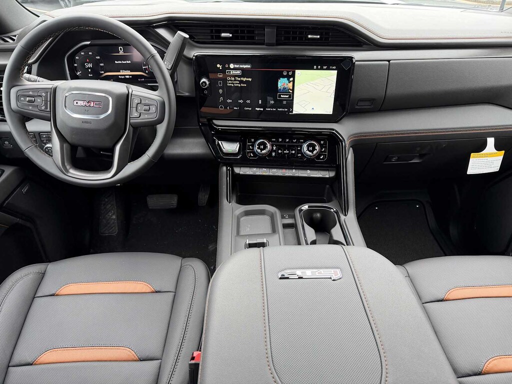 AT4 PREMIUM PLUS PACKAGE includes (PDO) AT4 Preferred Package, (CF5) power sunroof, (CWM) Technology Package and (VXW) AT4 high clearance step, LPO, TECHNOLOGY PACKAGE includes (DRZ) Rear Camera Mirror and (UV6) Multicolor 15" Diagonal Head-Up Display, AT4 PREFERRED PACKAGE includes (UG1) Universal Home Remote, (A48) rear sliding power window and (U01) Roof Marker Lamps, AUDIO SYSTEM, 13.4" DIAGONAL PREMIUM GMC INFOTAINMENT SYSTEM WITH GOOGLE BUILT IN APPS SUCH AS NAVIGATION AND VOICE ASSISTANCE includes color touch-screen, multi-touch display, AM/FM stereo, Bluetooth® streaming audio for music and most phones; featuring wireless Android Auto® and Apple CarPlay® capability for compatible phones (STD), ENGINE, 6.6L V8 with Direct Injection and Variable Valve Timing, gasoline, (401 hp [299 kW] @ 5200 rpm, 464 lb-ft of torque [629 N-m] @ 4000 rpm) (STD), TRANSMISSION, 10-SPEED AUTOMATIC (STD). GMC AT4 with Sterling Metallic exterior and Jet Black with Kalahari accents interior features a 8 Cylinder Engine with 401 HP at 5200 RPM*.