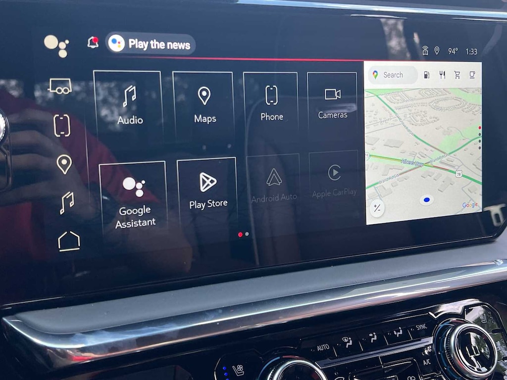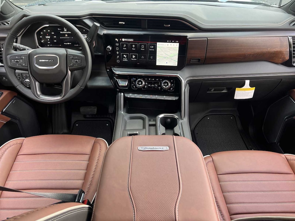 AUDIO SYSTEM, 13.4" DIAGONAL PREMIUM GMC INFOTAINMENT SYSTEM WITH GOOGLE BUILT IN APPS SUCH AS NAVIGATION AND VOICE ASSISTANCE includes color touch-screen, multi-touch display, AM/FM stereo, Bluetooth® streaming audio for music and most phones; featuring wireless Android Auto® and Apple CarPlay® capability for compatible phones (STD), ENGINE, DURAMAX 6.6L TURBO-DIESEL V8, B20-DIESEL COMPATIBLE (470 hp [350.5 kW] @ 2800 rpm, 975 lb-ft of torque [1322 Nm] @ 1600 rpm) (STD), TRANSMISSION, 10-SPEED AUTOMATIC (STD). GMC Denali Ultimate with Downpour Metallic exterior and Alpine Umber interior features a 8 Cylinder Engine with 470 HP at 2800 RPM*.