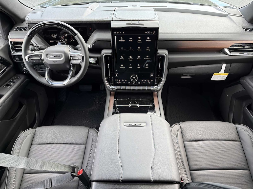 DENALI RESERVE PACKAGE includes (CWN) Advanced Technology Package content, (ZM1) Enhanced Trailering Technology Package content, (C3U) Panoramic power sunroof, (B3L) power-retractable assist steps with perimeter lighting, (SMI) 22" 6-spoke Chrome wheels and (SFE) wheel locks, LPO, ADVANCED TECHNOLOGY PACKAGE includes (UKL) Super Cruise, (DRZ) Rear Camera Mirror, (UW9) Rear Seat Media System, (NWM) Advanced Security Package content and (NHT) Max Trailering Package, LPO, 24" (61.0 CM) BRIGHT WHEELS LPO wheels will come with 4 steel 24" wheels from the factory with alignment specs set to 24" LPO wheel selected (dealer-installed) Includes wheel locks and not (SFE) wheel locks, LPO. PREMIUM CAPABILITY PACKAGE WITH ACTIVE RESPONSE 4WD includes (F47) Air Ride Adaptive suspension and (G96) electronic limited-slip differential, SUSPENSION, AIR RIDE ADAPTIVE, ENGINE, 6.2L ECOTEC3 V8 with Dynamic Fuel Management, Direct Injection and Variable Valve Timing, includes aluminum block construction (420 hp [313 kW] @ 5600 rpm, 460 lb-ft of torque [624 Nm] @ 4100 rpm) (STD), TRANSMISSION, 10-SPEED AUTOMATIC electronically controlled with overdrive, includes Traction Select System including tow/haul (STD), MAX TRAILERING PACKAGE includes (UKW) Blind Zone Steering Assist with Trailering, (PZ8) Hitch View, (UET) Smart Trailer Integration Indicator, (JL1) integrated trailer brake controller and (V03) extra capacity cooling system Also includes (NQH) 2-speed active transfer case and (JHD) Hill Descent Control on 4WD models. ADVANCED SECURITY PACKAGE includes (UTR) self-powered horn, (UTV) interior movement sensors, (UTU) vehicle inclination sensors, (UTW) glass break sensors in rear quarter glass and liftgate window and door and liftgate lock shields, AUDIO SYSTEM, 16.8" DIAGONAL PREMIUM GMC INFOTAINMENT SYSTEM with high contrast display and local backlight dimming, with Google built-in compatibility, including navigation capability, color touch-screen, multi-touch display, connected apps, personalized profiles for each driver's settings, and Natural Voice Recognition (STD). GMC Denali with Onyx Black exterior and Jet Black interior features a 8 Cylinder Engine with 420 HP at 5600 RPM*.