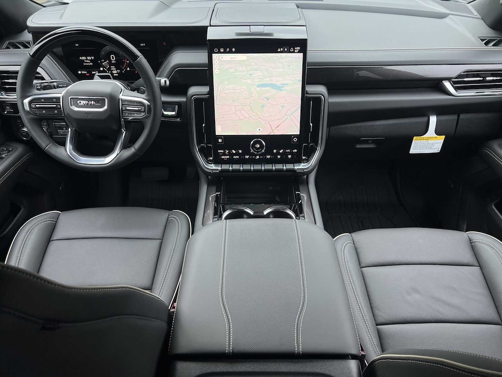 ELEVATION PREMIUM PACKAGE includes (CWM) Technology Package, (NHT) Max Trailering Package, (C3U) power sunroof and (UW9) Rear Sear Media System (Includes (UKL) Super Cruise when (LZ0) Duramax 3.0L Turbo-Diesel engine is ordered. LPO, 22" (55.9 CM) MULTI-SPOKE GLOSS BLACK WHEELS LPO wheels will come with 4 steel 22" wheels from the factory with alignment specs set to 22" LPO wheel selected (dealer-installed) (Includes wheel locks and not (SFE) wheel locks, LPO. SUPER CRUISE a hands-free driver assistance feature for use on compatible roads, includes automatic lane changing and trailering capability Includes a 3-Year trial.), TECHNOLOGY PACKAGE includes (DRZ) Rear Camera Mirror and (UV6) Head-Up Display (Also includes (KQV) heated and ventilated driver and front passenger seats, (AVK) driver 4-way power lumbar seat adjuster and (AVU) front passenger 4-way power lumbar seat adjuster. LPO, FLOOR LINER PACKAGE (dealer-installed) (Includes (RIA) 1st and 2nd row all-weather floor liners, LPO, (RIB) 3rd row all-weather floor liners, LPO and (CAV) all-weather cargo mat, LPO. SEATS, SECOND ROW BUCKET, POWER RELEASE, ENGINE, 5.3L ECOTEC3 V8 with Dynamic Fuel Management, Direct Injection and Variable Valve Timing, includes aluminum block construction (355 hp [265 kW] @ 5600 rpm, 383 lb-ft of torque [518 Nm] @ 4100 rpm) (STD), TRANSMISSION, 10-SPEED AUTOMATIC electronically controlled with overdrive, includes Traction Select System including tow/haul (STD), MAX TRAILERING PACKAGE includes (UKW) Blind Zone Steering Assist with Trailering, (PZ8) Hitch View, (UET) Smart Trailer Integration Indicator, (JL1) integrated trailer brake controller and (V03) extra capacity cooling system Also includes (NQH) 2-speed active transfer case and (JHD) Hill Descent Control on 4WD models. AUDIO SYSTEM, 16.8" DIAGONAL PREMIUM GMC INFOTAINMENT SYSTEM with high contrast display and local backlight dimming, with Google built-in compatibility, including navigation capability, color touch-screen, multi-touch display, connected apps, personalized profiles for each driver's settings, and Natural Voice Recognition (STD). GMC Elevation with Onyx Black exterior and Jet Black interior features a 8 Cylinder Engine with 355 HP at 5600 RPM*.