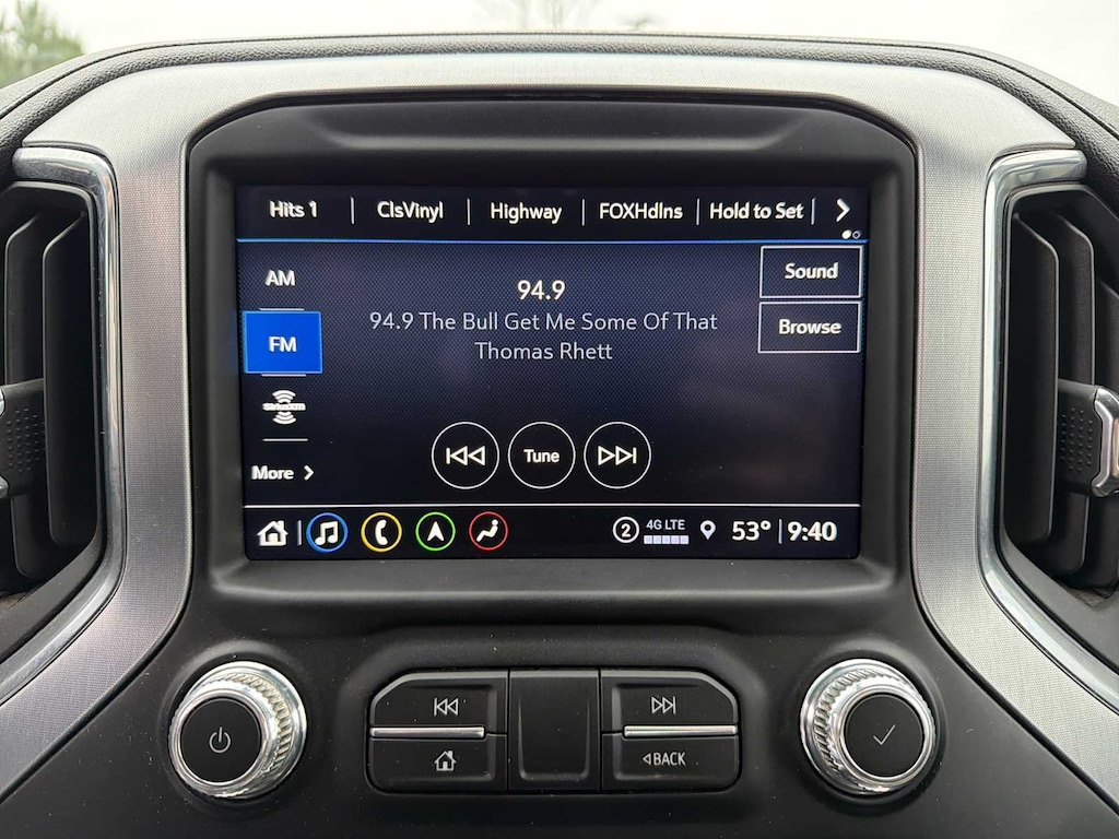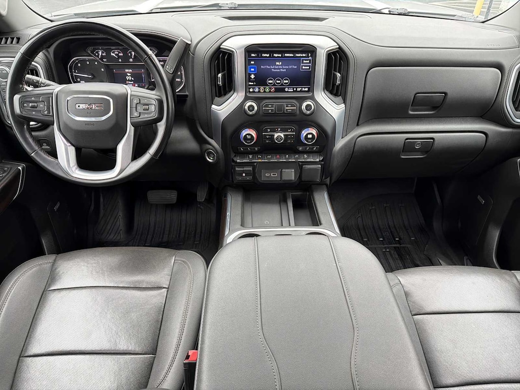 ENGINE, DURAMAX 6.6L TURBO-DIESEL V8, B20-DIESEL COMPATIBLE (445 hp [332 kW] @ 2800 rpm, 910 lb-ft of torque [1220 Nm] @ 1600 rpm) (Includes (K05) engine block heater.), SLT PREMIUM PACKAGE includes (PCY) SLT Convenience Package, (PDY) SLT Preferred Package, (PQB) Driver Alert Package I, (BVQ) 6" rectangular, cab length Chrome assist steps and (CGN) spray-on bedliner. SLT PREFERRED PACKAGE includes (UVN) Bed View Camera, (UVS) HD Surround Vision with Two Trailer View Camera Provisions, (IOT) 8" diagonal Premium GMC Infotainment with navigation, (UQA) Bose Premium Audio System and (K4C) Wireless Charging, SLT CONVENIENCE PACKAGE includes (A50) bucket seats with (D07) center console, (KQV) ventilated front seats, (A48) rear sliding power window, (UG1) Universal Home Remote, (MCR) USB Ports (Inside Console with bucket seats), (MCZ) 2 USB ports with auxiliary input and (KA6) rear heated seats; Single rear wheel models also include (U01) Roof Marker Lamps, X31 OFF-ROAD AND PROTECTION PACKAGE includes (X31) Off-Road suspension with Twin-tube Rancho shocks, (JHD) Hill Descent Control and (NZZ) skid plates (transfer case and oil pan), (CGN) spray-on bedliner, (RIA) All-weather floor liners, LPO and X31 badge (replaces "4X4" badge on bed) Includes (Q7R) 20" machined aluminum wheel with bright Silver accents and (QF9) LT275/65R20 all-terrain, blackwall tires. GOOSENECK / 5TH WHEEL PACKAGE includes (Z6A) Gooseneck / 5th Wheel Prep Package. (Includes (CGN) spray-on bed liner and (UVN) Bed View Camera. DRIVER ALERT PACKAGE I includes (UD5) Front and Rear Park Assist, (UKC) Lane Change Alert with Side Blind Zone Alert and (UFG) Rear Cross Traffic Alert (Beginning with start of production, vehicles will be forced to include (00Z) Not Equipped with Front and Rear Park Assist, which removes Front and Rear Park Assist. See dealer for details or the window label for the features on a specific vehicle Includes Perimeter Lighting. AUDIO SYSTEM, PREMIUM GMC INFOTAINMENT SYSTEM WITH NAVIGATION AND 8" DIAGONAL COLOR TOUCH-SCREEN includes multi-touch display, AM/FM stereo, Bluetooth® streaming audio for music and most phones; featuring wireless Android Auto® and Apple CarPlay® capability for compatible phones, advanced voice recognition, in-vehicle apps, personalized profiles for infotainment and vehicle settings. Includes greater memory. Includes (PZ8) Hitch Guidance with hitch view.), TRANSMISSION, ALLISON 10-SPEED AUTOMATIC. GMC SLT with Quicksilver Metallic exterior and Jet Black interior features a 8 Cylinder Engine with 401 HP at 5200 RPM*.