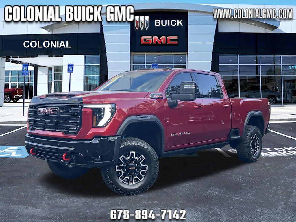 ENGINE, DURAMAX 6.6L TURBO-DIESEL V8, B20-DIESEL COMPATIBLE (470 hp [350.5 kW] @ 2800 rpm, 975 lb-ft of torque [1322 Nm] @ 1600 rpm) (Includes (K05) engine block heater.), AUDIO SYSTEM, 13.4" DIAGONAL PREMIUM GMC INFOTAINMENT SYSTEM WITH GOOGLE BUILT IN APPS SUCH AS NAVIGATION AND VOICE ASSISTANCE includes color touch-screen, multi-touch display, AM/FM stereo, Bluetooth® streaming audio for music and most phones; featuring wireless Android Auto® and Apple CarPlay® capability for compatible phones (STD), TRANSMISSION, 10-SPEED AUTOMATIC. GMC AT4X with Volcanic Red Tintcoat exterior and Obsidian Rush interior features a 8 Cylinder Engine with 470 HP at 2800 RPM*.